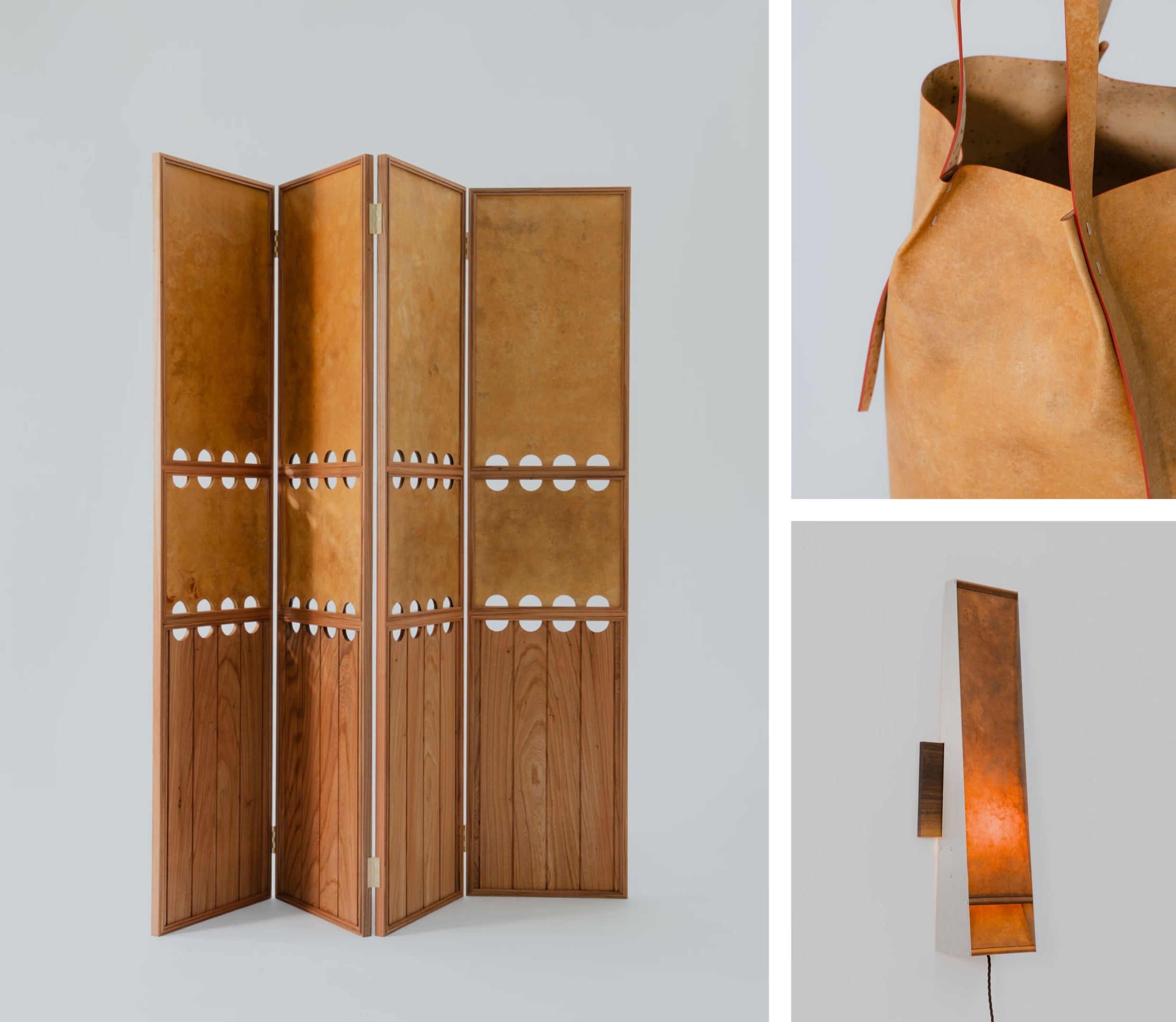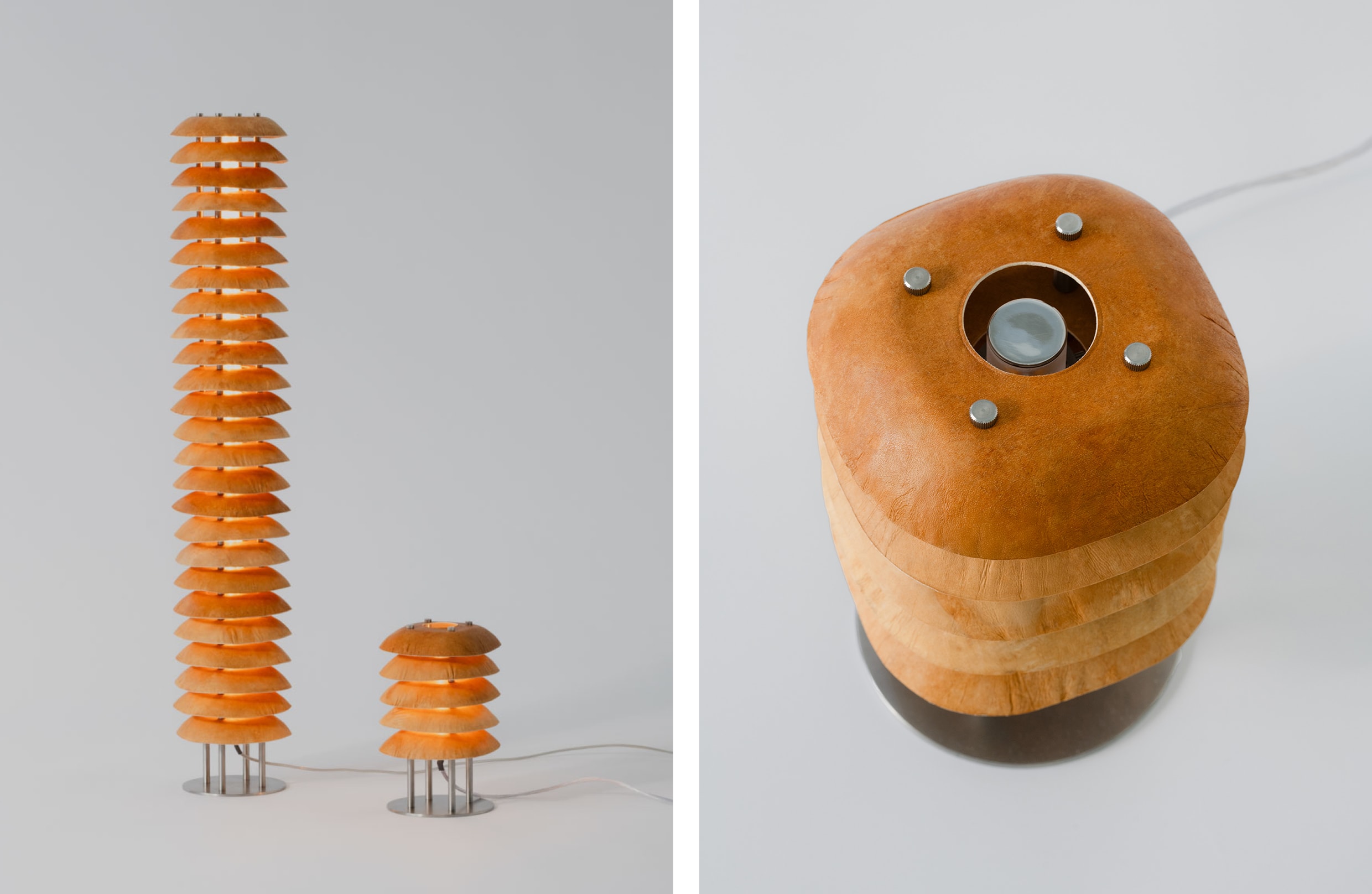 Enkele werken uit de tentoonstelling tonen hoe deze ontmoeting tussen biotechnologie en ambacht vorm krijgt. Zo presenteert atelier axo de Eaves Lamp, een geometrisch uitgepuurde wandlamp waarin het materiaal speelt met lichtval en textuur. Maria Bruun ontwierp de Subject Matter Paravent, een modulair kamerscherm waarin Reishi™ en hout het licht filteren tot een warme gloed. Bij Frederik Gustav krijgt Reishi™ een zwevend karakter in Arbor, een delicate hanglamp geïnspireerd op vliegers, waarin staal en mycelium elkaar subtiel in evenwicht houden