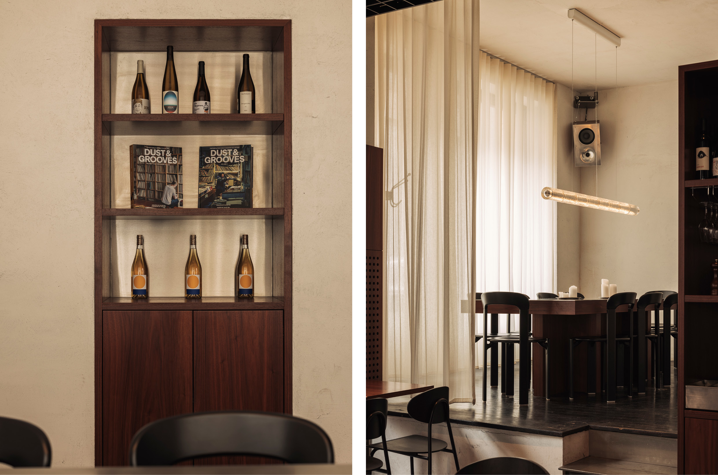 Achter het project staan Benoît Hallez en Charlie Gordower, twee vertrouwde namen binnen de Brusselse horeca. Ze drukten eerder hun stempel op zaken als Schievelavabo en het Manneken Pis Café, maar met Boaboa kiezen ze voor iets intiemers. Voor de akoestiek deden ze een beroep op Kahle Acoustics, het Belgische bureau dat ook meewerkte aan de Philharmonie de Paris. Het geluidssysteem komt van H.A.N.D. HiFi in Berlijn, bekend uit de club Berghain. Die combinatie van technische precisie en zintuiglijke verfijning vormt het hart van de ruimte: een klankbeeld dat niet overheerst, maar omsluit.