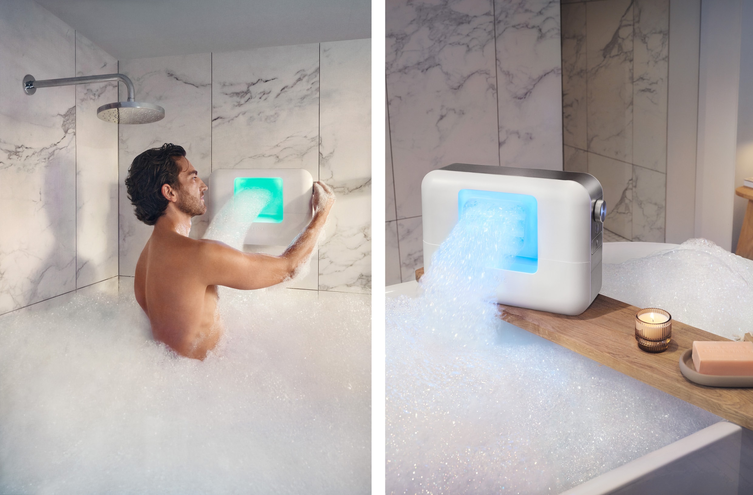 Thuiswellness krijgt een nieuwe betekenis met de introductie van de ESPURO® CloudSPA van KLAFS. Deze innovatie brengt een ongebruikelijke, bijna filmische ervaring naar de badkamer: dicht, luchtig schuim dat zich als een zachte laag om het lichaam vormt en de zintuigen activeert aan de hand van een aangename geur en textuur. De CloudSPA creëert een omgeving die het alledaagse badmoment verandert in een bewust ritueel van vertraging. Met warme, koele of tintelende accenten die de gebruiker zelf kiest krijgt elk bad- of douchemoment een eigen karakter.