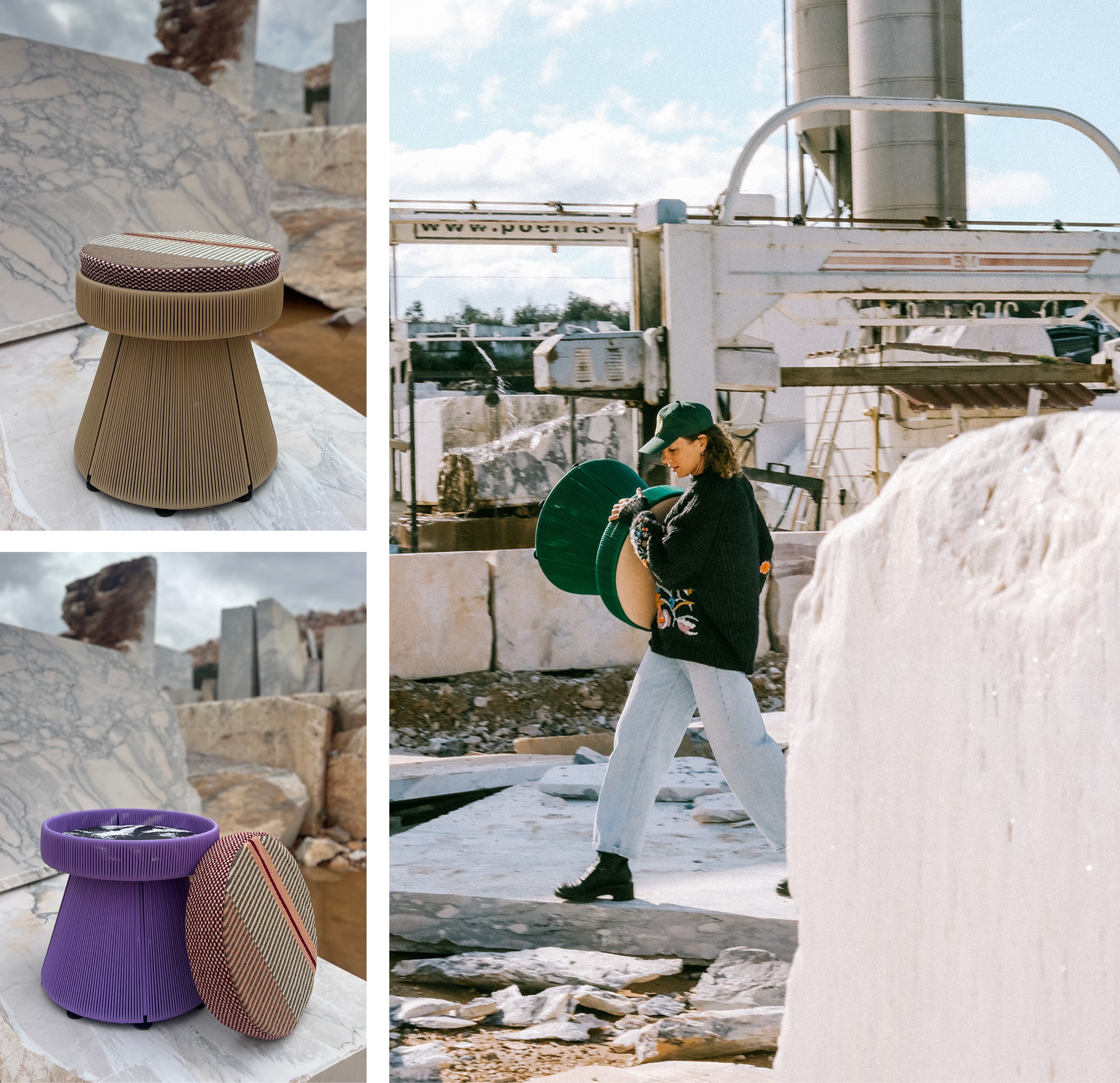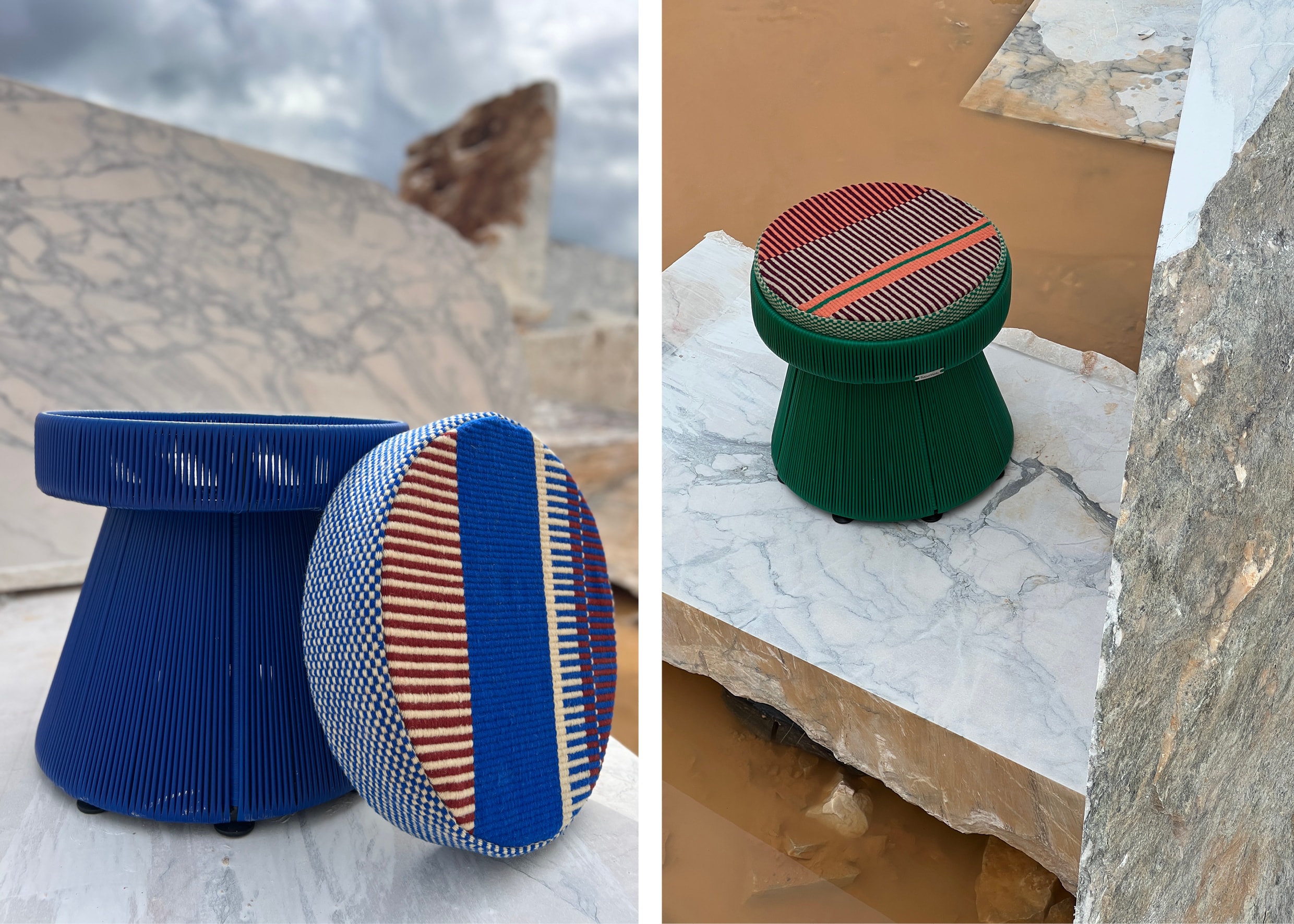 Igneo Sardão is een toonbeeld van dat engagement. De sokkel is handgeweven door Tucurinca, terwijl de kussens werden vervaardigd in samenwerking met het Portugese Fabricaal — een zeldzaam weefatelier dat nog werkt met houten weefgetouwen, voornamelijk bediend door lokale vakmensen op leeftijd. Vijf unieke kussens werden gecreëerd, elk combineerbaar met het onderstel, zodat gebruikers hun eigen configuratie kunnen samenstellen. De keuze voor Fabricaal werd niet alleen bepaald door hun vakkennis, maar ook door het inspirerende verhaal van drie jonge ontwerpers die het atelier overnamen en met respect voor traditie een nieuwe toekomst uittekenden.