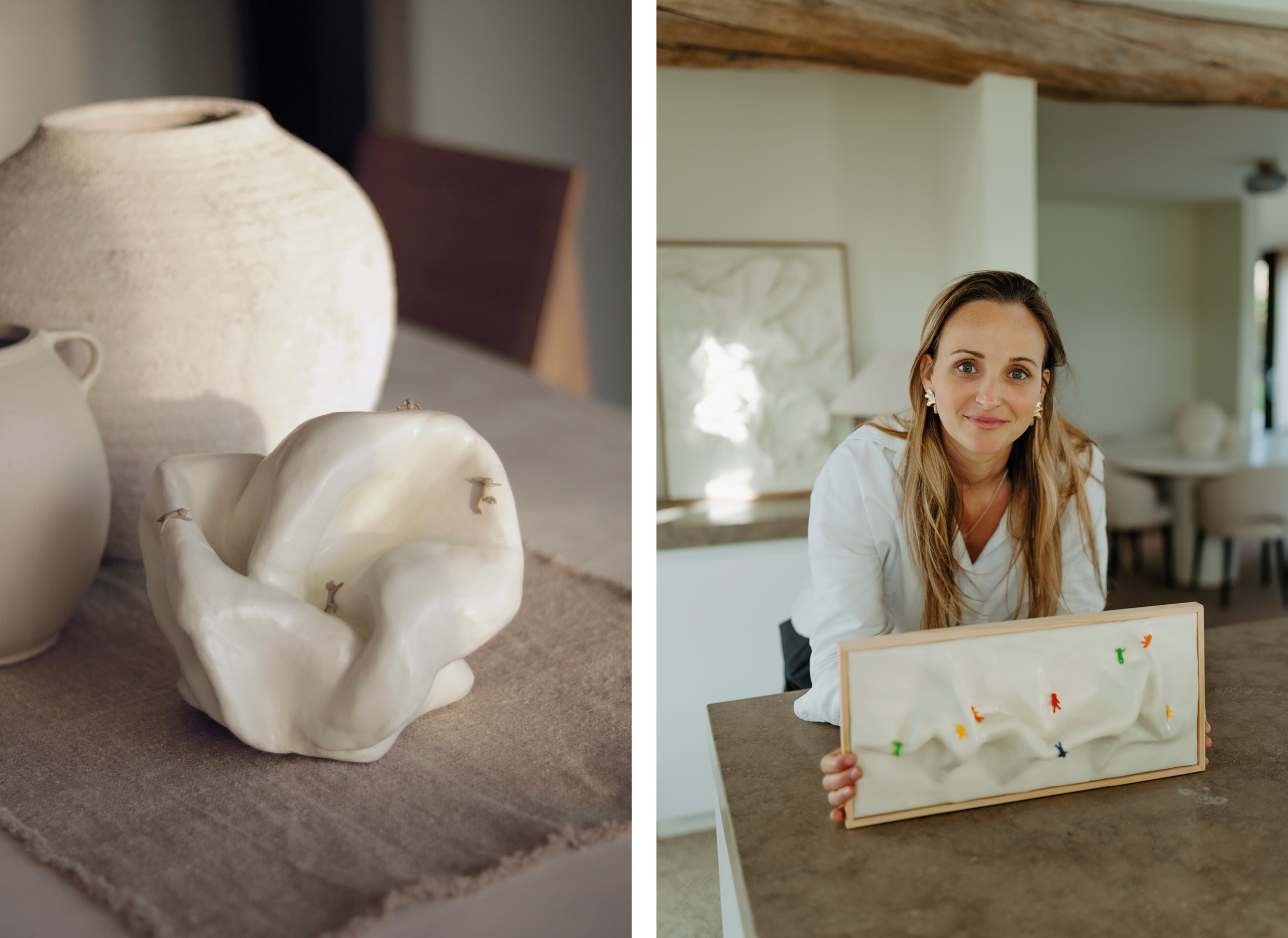 De Belgische kunstenares Evi Van den Plas laat zich inspireren door de deining van het leven. Vanuit haar atelier Art et Vie vertaalt ze de onvoorspelbaarheid van het bestaan naar tastbare sculpturen en muurwerken. Met golvende lijnen, symbolische figuren en een poëtisch gevoel voor balans weet ze emoties om te zetten in vorm. Haar werk ademt rust, maar draagt tegelijk het gewicht van de menselijke ervaring.